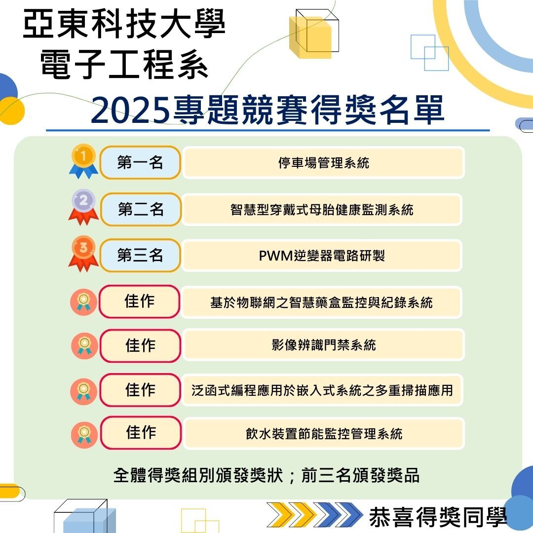 【賀】電子工程系1141學期「專題研究競賽」第二階段得獎名單